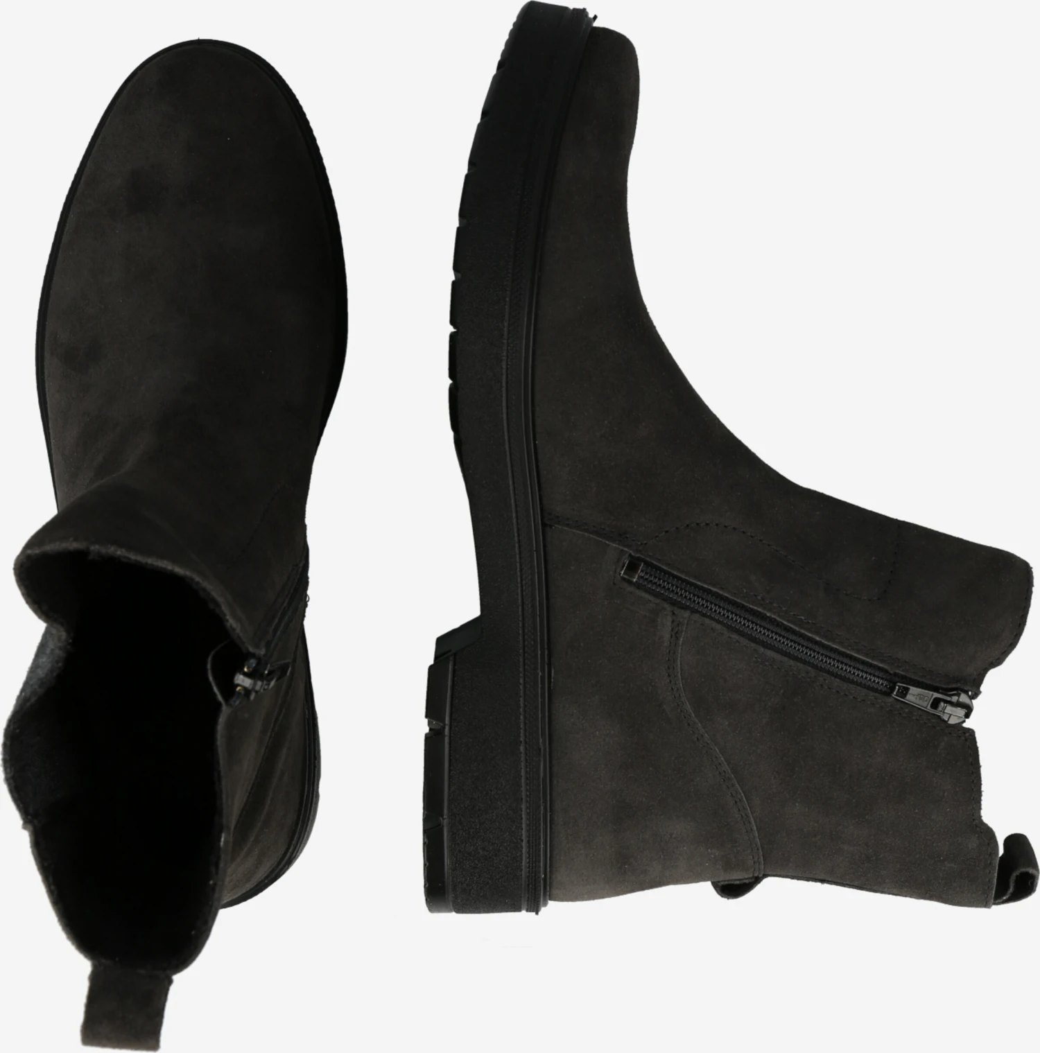 EffenLeerBlokhakRonde neusRitszakken aan de zijkantVersterkte hakHielbandOp staal nadenFlexibele zoolSuèdeRitssluiting